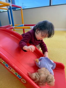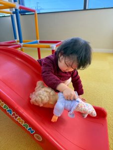 こちらのお友達はお人形を滑らせてあげたいようで、