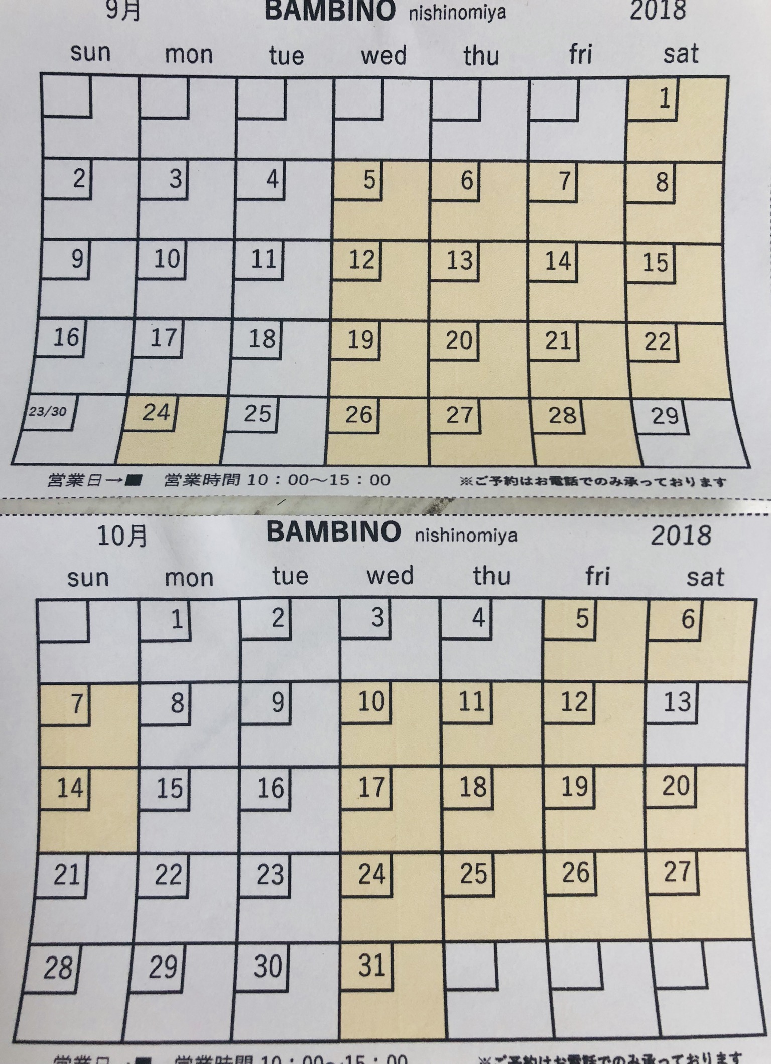 基本的に水曜日から土曜日までの10時〜15時までの営業となっております!