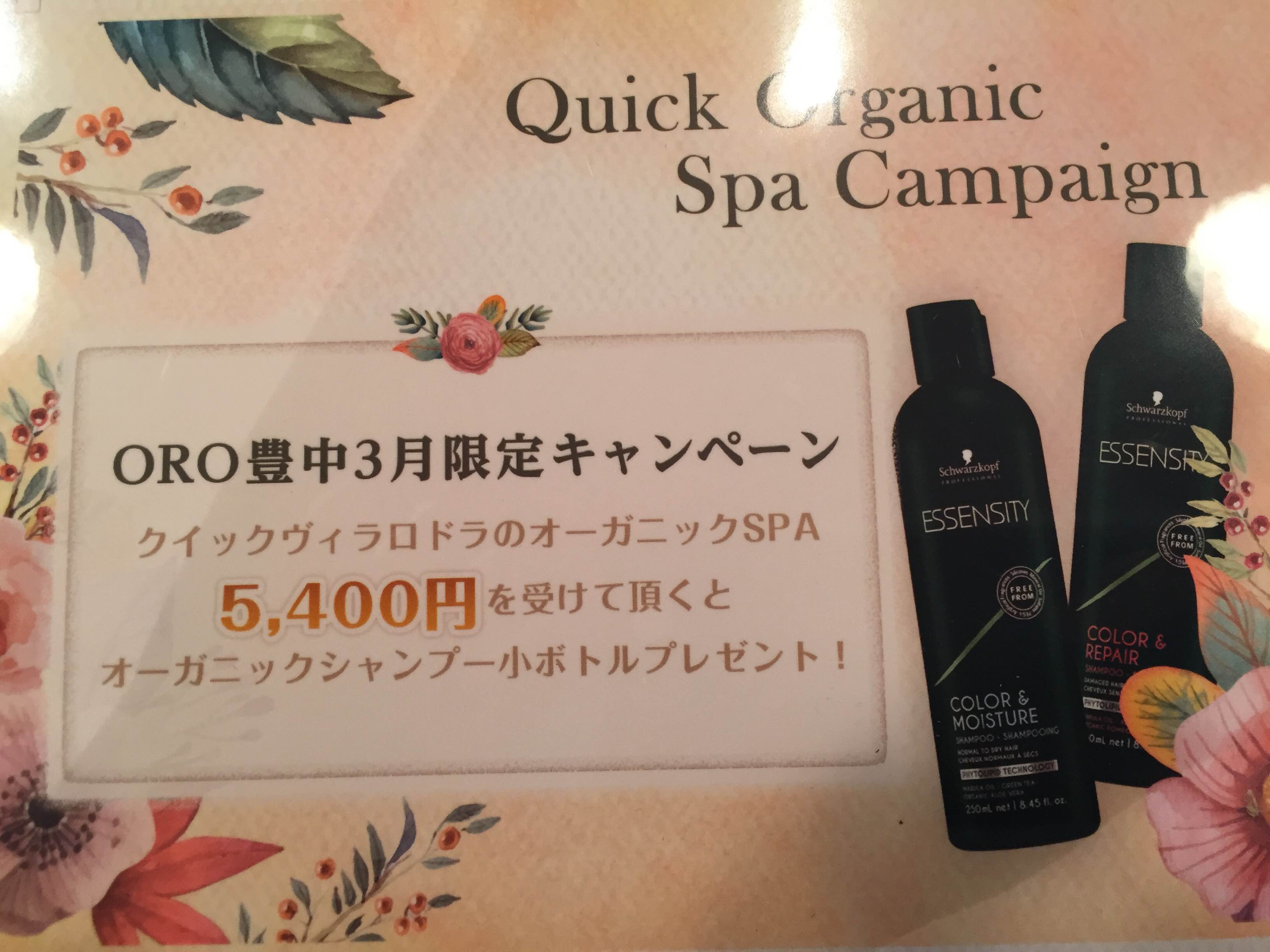 内容は30分のオーガニックスパを体験して頂いた方にシャンプーボトルをプレゼントするといった内容なのですが、ヘッドスパ自体も先程のオーガニックアロマを5種類使い分けれて、炭酸ソーダスパも同時に出来るで絶対満足して頂けれると思います!