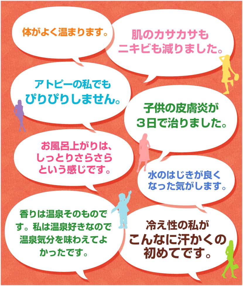 お風呂の水が温泉水と同じ状態になるので、温泉で得られるお肌の透明感や潤いをお家のお風呂で体感する事が出来ます。。