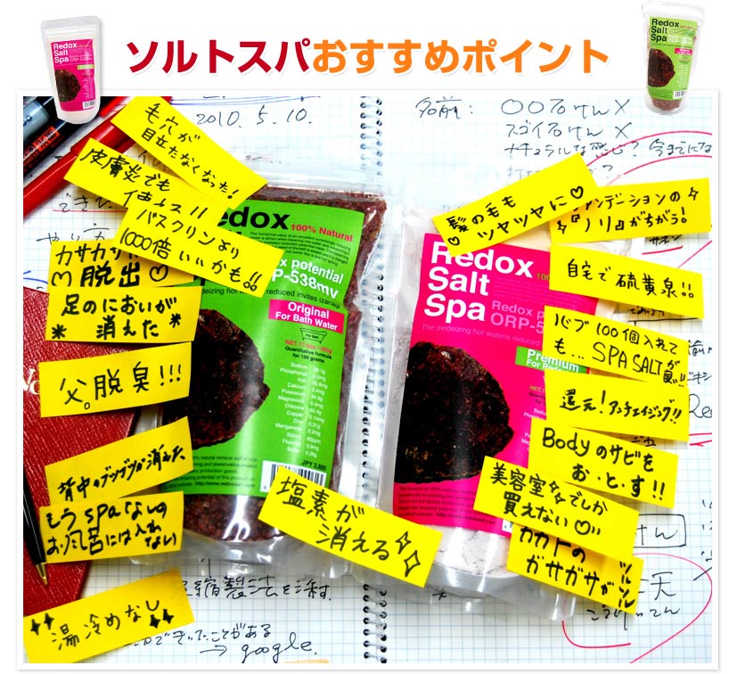 水道水に含まれている塩素(カルキ)がレドックスソルトスパを入れる事によって除去されます!カルキを除去する事により肌のカサカサ感から解放できます。
